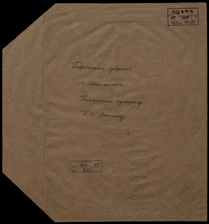 Title | Monument to Admiral MANakhimov in the city of Sevastopol Tavrician province |