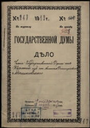 Personal file of the member of the State Duma of the Fourth Convocation from the Kursk Gubernia Alexei Dmitrievich Meshkovsky [Delo]: October 19, 1912 - August 23, 1917 - 1912-1917 -22 liters; 36.5х26 cm - (Fund of the State Duma I, II, III and IV convocations Inventory No. 9) - Original title: Case of a member of the State Duma from the Kursk province Alexei Dmitrievich Meshkovsky October 19, 1912 - August 23, 1917