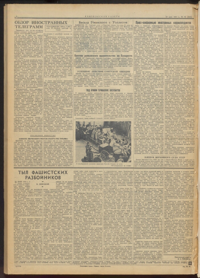 Teacher newspaper.06/29/1941 No. 78 (2870).- Moscow.-605: territory, people Agreement No. 146/23-GP of June 14, 2023.Electronic copy source: PB