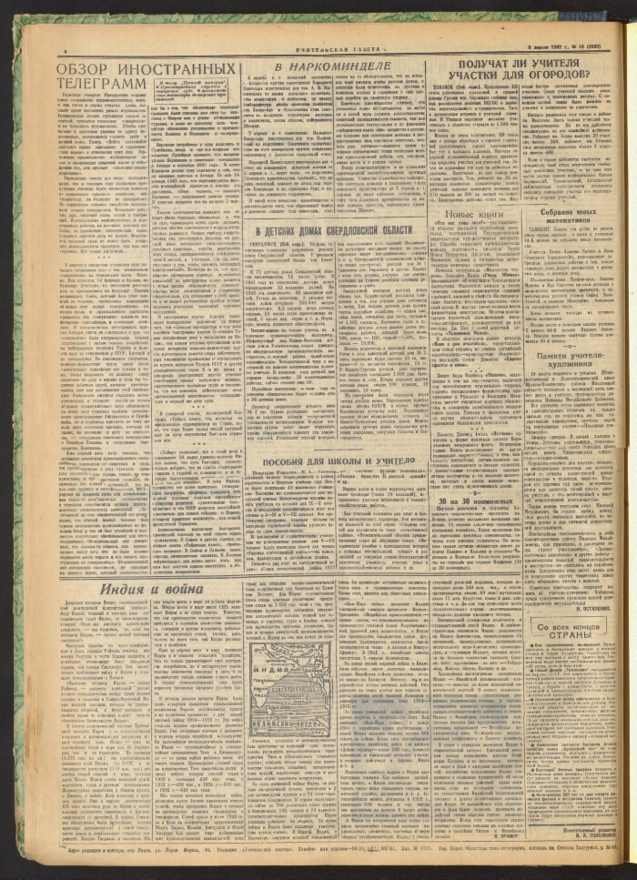 Teacher newspaper.04/08/1942 No. 15 (2935).- 1942. -605: people, territory agreement No. 146/23-GP dated 06/14/23 def.Ed.: p.3-4 gap..Electronic copy source: PB