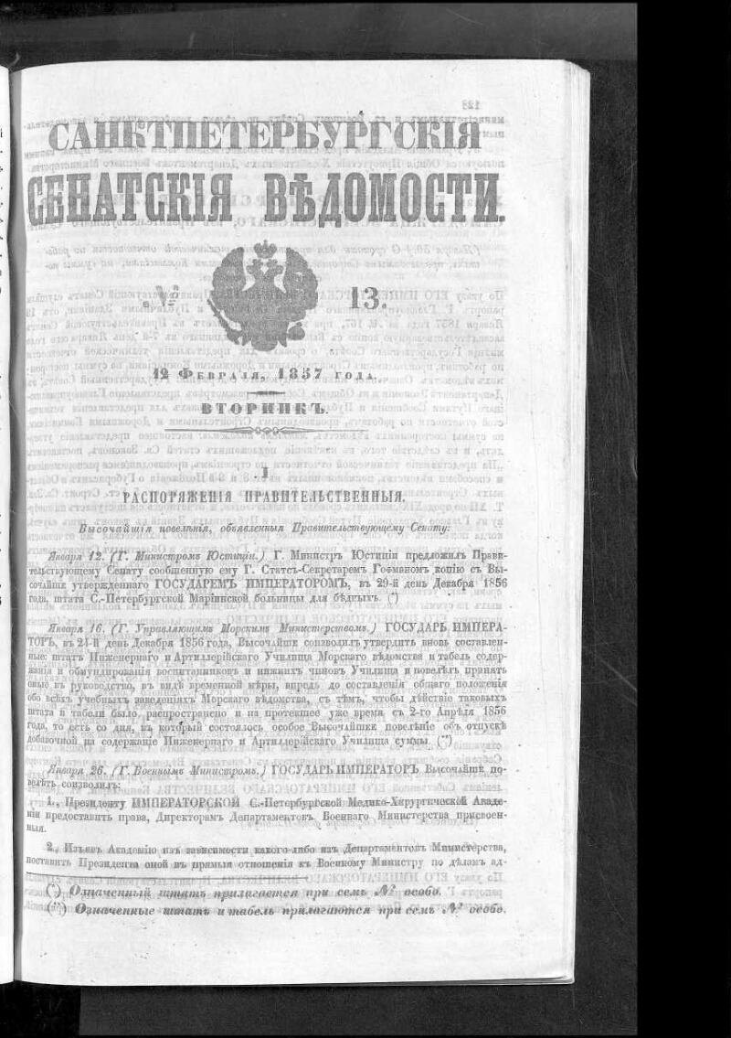 1857, No. 13 (February 12). - 1857. - [62] p. Sec. pag. : table .. -