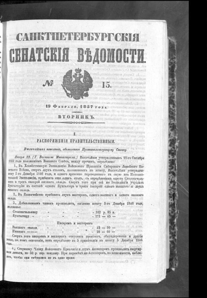 1857, No. 15 (February 19). - 1857. - [38] p. Sec. pag. : table .. -