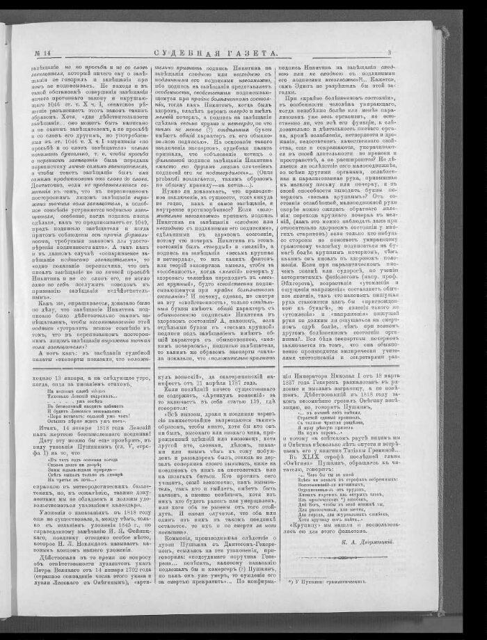 Trial newspaper: weekly newspaper without prior censorship/Editor-Publisher f. w. de-Eyelids. -October 17, 1882-[1905], [?]. -St. Peterburg, 1882-1905. - The newspaper is published weekly (on Sunday) in St. Petersburg in 1882-1905, with the application of the selection of decisions of criminal and civil appeals departments and General Meeting Of the Senate. Editor-Publisher f. w. de-Eyelids. In 1886 g. exited the application to specific numbers. Pointers for 1882-1883 Gg. . |