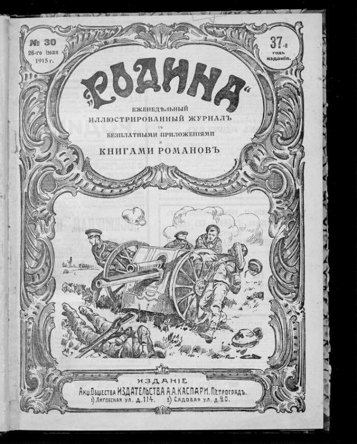 Birthplace: literary family magazine with illustrated the divisions "world in review" and "Fun to watch holiday". -Saint Petersburg: joint-stock company Publishing House a. Kaspari, 1879-1917. - The "Rodina"-illustrated magazine for family reading, founded in St. Petersburg in 1879, a. Zakharov, monthly, from 1883-downloads. In 1879-1880 Gg. go with the Herald people's aid "; outside 1884-with Progressive agriculture ". In 1886, the magazine was purchased by a. a. Caspary. Since then, the magazine begins to print monthly application ("Entertainment into hours of rest", an illustrated World review ", a weekly political and public newspaper" Rodina ") and up to 1917 year published under his editorship. In August 1883, journal reorganized into newspaper and again starts numbering issues. In 1888-1912 Gg. the publication comes out 2 two parallel parts with the title "Birthplace: weekly illustrated magazine for family reading" and "homeland: weekly newspaper political, social and literary"; for each year there is a common cover page with the title: "motherland: a weekly illustrated magazine of literature and political public newspaper"; The No. 52 1911 g. independent newspaper has ceased; in 1912, every issue has a newspaper with the headline: "motherland: weekly reviews of policies and public life: newspaper" Rodina "magazine Department. The 1917 g. go with your application "free Russia". Subtitle: 1878 Kn. 1 people's magazine (with pictures); 1879 Kn. June 2-1883/July monthly magazine with pictures (with minor modifications); 1883 # 1 (August)-1885 Ezhenedelnnaja newspaper public and literary; 1886-1887 Weekly illustrated newspaper political, social and literary (with minor modifications); In the magazine: 1888-1916 magazine for family reading. (On the cover, 1907. Literary and art magazine and newspaper divisions with illustrated "world in review" and "fun hours of rest"; 1908-1916: literary family magazine with illustrated the divisions "world in review" and " Entertainment in the hours of rest "; some of the rooms, 1915-1916.: weekly illustrated magazine with free books and novels); 1917 Weekly literary magazine (cover: literary family magazine, part numbers: ... with illustrated the divisions "world in review" and "Entertainment" in portions of suites: a weekly illustrated magazine with free books and novels); In the newspaper: 1888-1901 # 48 weekly newspaper political, social and literary; No. 49 1901-1903 Ezhenedelnja newspaper. Politics, news, social life, etc.; 1904-1911 Weekly public and political newspaper (since 1909 ... Free Appendix to "the motherland"). Publisher: 1879-1884 No. 17 a. Transhel; 1884 # 18-1886, no. 6, 16-17 and n. Ponomarev; 1886 # 7-15 and n. Ponomarev and m. Antonov; 1886 # 18-1913 No. 42 a. Caspary; 1913 No. 43-1914 No. 34 a. izdatelnica Casp; No. 1914-1917 35 Joint stock company Publishing House a. Caspary. . |