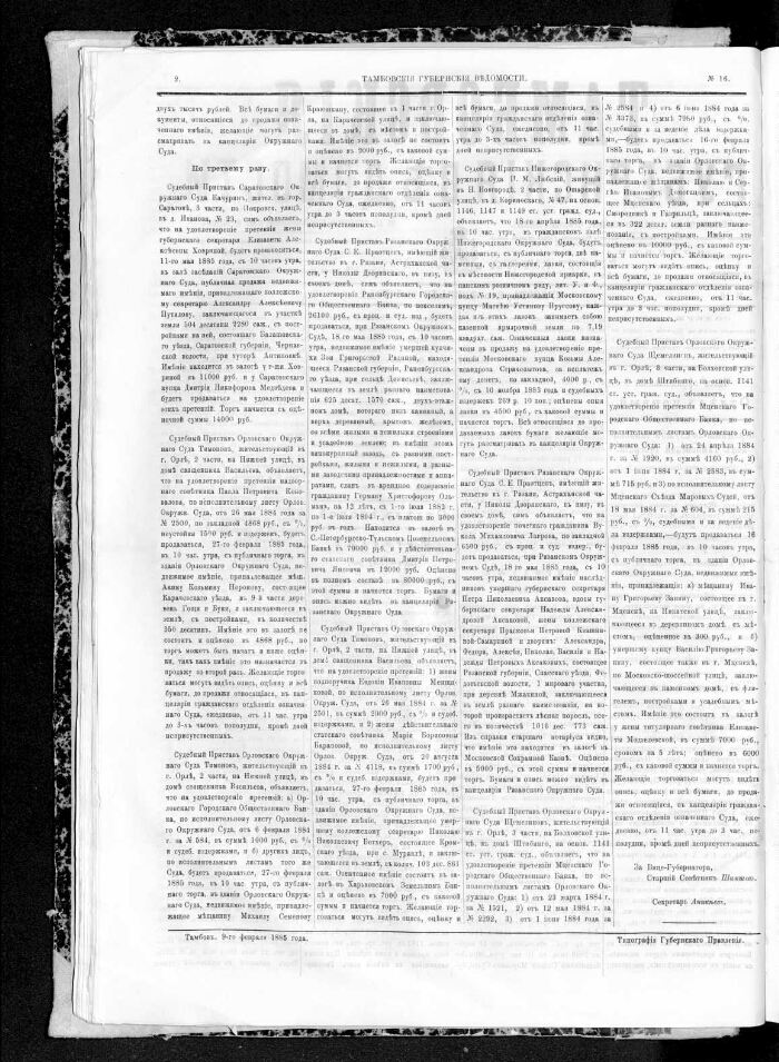 1885, No. 16 (February 9). - A type. lips. reign, 1885.-C. 2, 4, 2: tab. - Saturday. Contained: Changes in the service of officials. Announcements and notices. Advertisements for sale. Advertisements for sale. - Ex .: without a domain