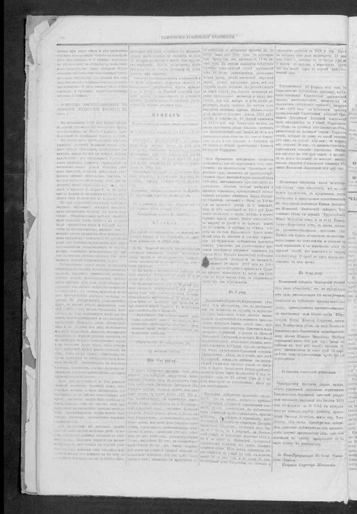Description Collections Domestic periodicals in the Presidential Library’s collections → Newspapers → T → Tambovskie Gubernskie Vedomosti (Tambov Provincial News). Tambov, 1838-1917 → 1864 из 4
