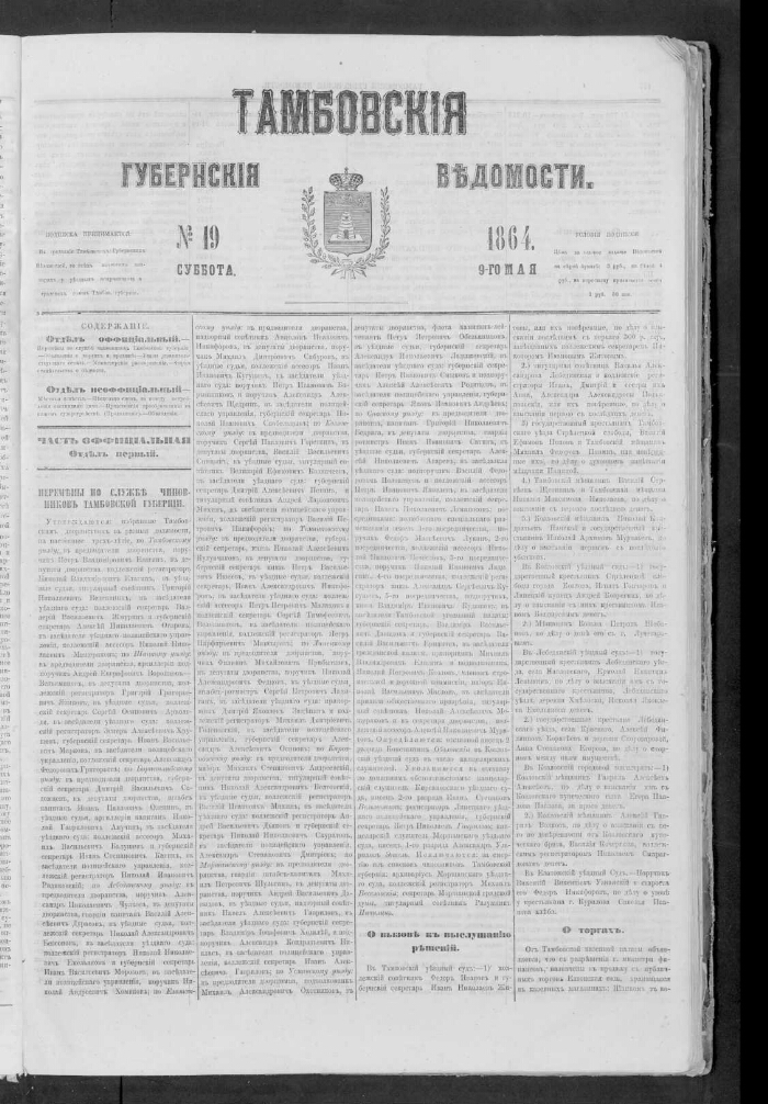 Description Publisher Тип. Губ. правления Collections Domestic periodicals in the Presidential Library’s collections → Newspapers → T → Tambovskie Gubernskie Vedomosti (Tambov Provincial News). Tambov, 1838-1917 → 1864 из 8