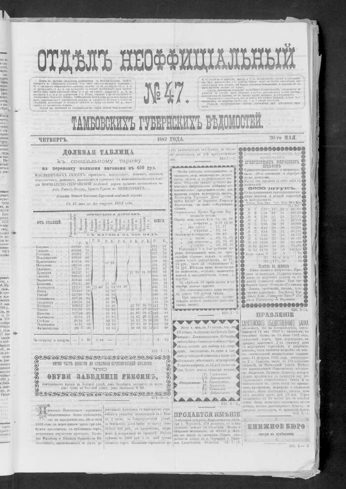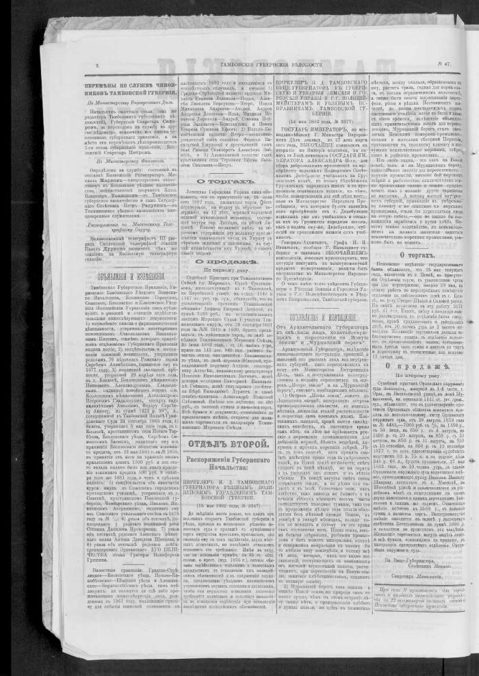 Тамбовские губернские ведомости. 1882, № 47 (20 мая)