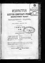 Russian Geographical Society East Siberian DepartmentThe news of the East Siberian Department of the Russian Geographical Society - Irkutsk, 1870- - 27 cm -Published from December 15, 1870, in Irkutsk, under uncertain time, issues up to 5 in the year editors of the publication in different years were: A F Usoltsev (t 1-8), m in Zagoskin (t 9-11, No. 1/2), N n agapitov (t 11, № 3 / 4-15), m I Pisarev (t 16/17), g n Potanin (t 18/19, № 1-4), D A Clemenz (T XXI, No.5 - XXIII)They came out under the titles: T 1 (1870/71) - T 8 (1877) Zvsstіya Siberkago was revealed by the Imperrurto Russian geographical society;T 9 (1878) - T 45 (1917) V. East Siberkago was revealed by Emperorskago Russkago geographic society;T 46 (1921/24) - T 49, 2 (1976) News of the East Siberian Department of the Russian Geographical Society (on the cover of T 2 (5) Izvestia Irkutsk State Scientific Museum);T 50, Issue 1 (1927) - T 55 (1929) News of the East Siberian Department of the State Russian Geographical Society;T 1 (56) (1936) Izvestia Society for the study of the Eastern Esibirsk Territory;T 2 (57) (1937) Izvestia Society for the study of the Eastern Esibirsk Region;T 58 (1954) - News of the East Siberian Department of the Geographical Society of the USSRWideheads: T 46, Volume 1 (1921) RSFSR;T 47, voluntary 1 (1924), T 49, MS 2 (1926), T 62 (1964) - 64 (1965) East Siberian Department of the Geographical Society of the USSRPublishers: T 46, Mesh 1 (1921) "Knowledge-force", Irkutsk branch;T 1 (56) (1936) East Siberian Regional Publishing House;T 2 (57) (1937) East Siberian Regional Publishing;T 59, Issue 1 (1960), 61 (1963) Irkutsk Book Publishing House;T 62 (1964), 64 (1965) - 65 (1967), 69 (1976) - East Siberian Book PublishingI Zagoskin, Mikhail Vasilyevich (1830-1904) II Usoltsev, Arseny Fedorovich (1830-1909) III Agapitov, Nikolai Nikolaevich (1840-1900) IV Pisarev, Mikhail Yakovlevich (1846-1891) V Potanin, Grigory Nikolaevich (1835-1920)Vi Clemenz, Dmitry Aleksandrovich (1848-1914) 1 Territory (Collection) 2 Domestic serial and continuing editions (collection) 3 Siberia East - History - Periodicals 4 Siberia Eastern - Physical Geography - PeriodicalsBBK 633 (2535) y52BBK 268 (2535) y52Electronic Source: PBT 19 No. 3 / Ed Ruler Affairs - Type Gas "Vost Review", 1888 -102 C: IL, Table -Description: ZegaTe-Aba, a clock on the animals in the ancient Buryat / Hangalls. Claims and signs of the peasants of the Minusinsky district / d Clemenz mixtureActions of the East Siberian Department from March 14 to April 9, 1888 - Bibliogr in a substrateElectronic Source: PB
