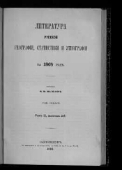 Meets, Vladimir Izmailovich (1830-1894).Literature of Russian geography, statistics and ethnography ...: [t.1-9] / Sost.V.I. Mezhov.- St. Petersburg: Type.V. Reason and to °, 1861-1883.-The publication was published by separate issues with title sheets.Stall.t. 1, 9: Literature of Russian geography, ethnography and statistics.Part of the circulation t. 3-9 came out as an application to the magazine "News of the Russian Geographical Society"..T. 2. Vol.2. For 1865: year 7th.- 1866. -VII, 152 s .. -Pointers: s.111-152..Electronic Source: PB