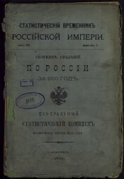 Statistical temporary of the Russian Empire.- St. Petersburg: Central Statistical Committee of the Ministry of the Interior, 1866-1890.-Statistical temporary of the Russian Empire.Series 1, 2 (vol. 1-25), 3 (vol. 1-18) (Ser. 3, Vol. 17. - 1887. - P. 1-2 tabs).In 1887-1918published the "statistics of the Russian Empire" edition;In 1888-1903- "Temperator of the Central Statistical Committee of the Ministry of the Interior.".I. Russia.Central Statistical Committee.1.Power (collection).2. People (collection).3. Domestic serial and continuing editions (collection).4. Russia - historical and statistical studies - 19 V.-- Periodicals.5. Departmental journals - Russia - 19-20 centuries ..BBK 63.3 (2) 52Я54BBK 60.62 (2) y54BBK 65.03 (2) y54Electronic Source: PBOriginal Storage Place: GPIBSeries 3. Vol.8: Collection of information across Russia for 1883.- [A type.DI.Shemetkina and to °], 1886. - [203] p.section.Pag.: Tab .. -Bibliogr.in a substrateNote.and in the text..Electronic Source: PB