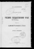 Lazarevsky, Nikolai Ivanovich (1868-1921).Lectures on Russian state law / Prost.-Doc.N.I.Lazarevsky.- St. Petersburg: Skl.ed.with bookSKL."Law", 1908-1910.- 26 cm. -.1. People (collection).Electronic Source: PBPlace of Storage Original: SPbSUT. 2: Administrative law.Part 1, management bodies.- A type.ac.Society."Word", 1910. - [6], 276 s .. -Bibliogr.In the text and substitution.Note .. - Ex.: no oblast, with a manus.litter..1. People (collection).Electronic Source: PBOriginal Storage Place: UrFU