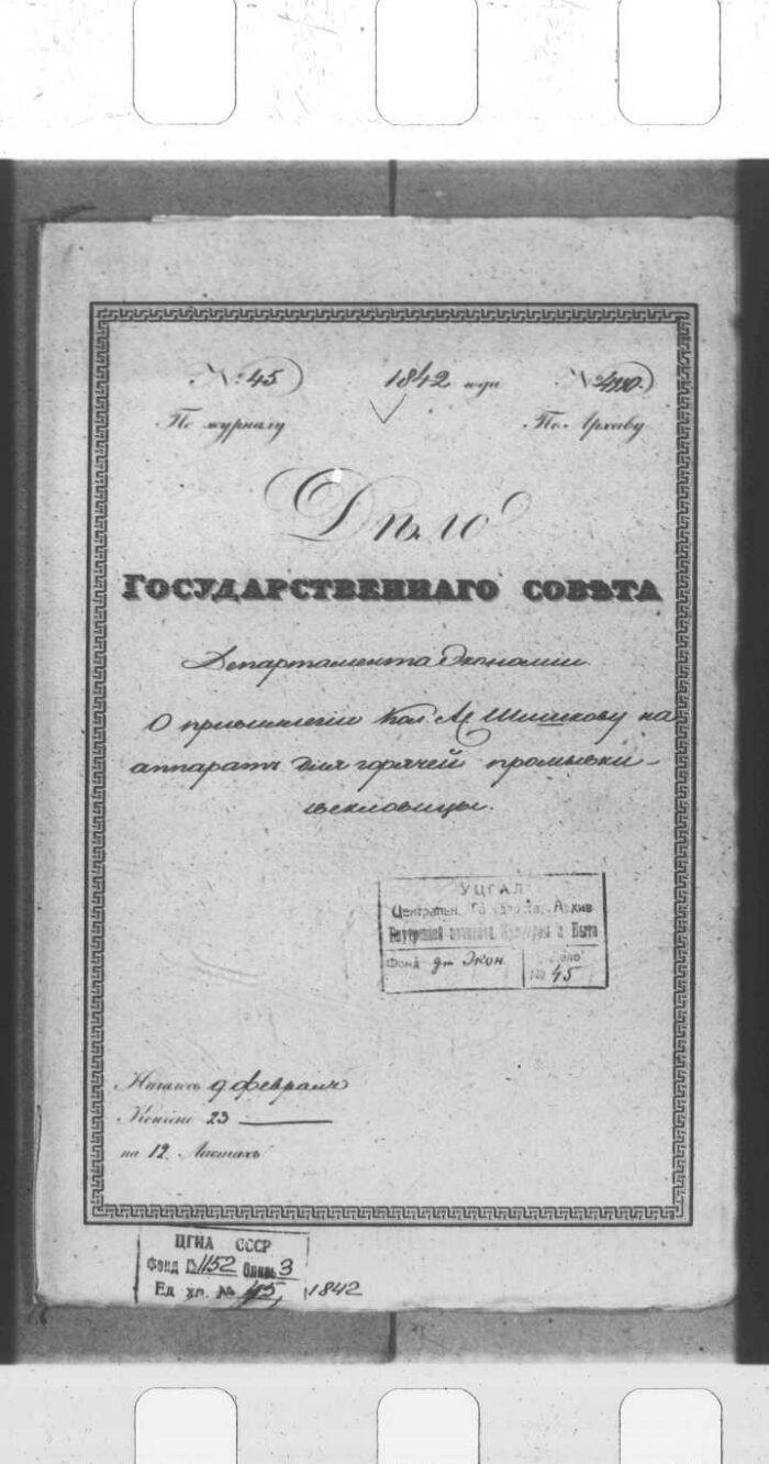 Title | The case of the privilege of the college Assoror Shishkov at the device for hot washing of beets invented |