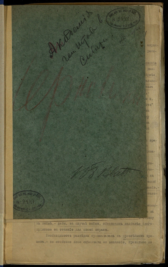 | Title | Ryabikov PF Work on the organization of the intelligence service in Europe during the imperialist war |