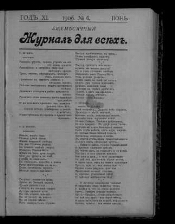 Magazine for all: monthly illustrated literary and popular.- G. 1-11.-Sanct-Petersburg, 1895-1906.-Subtitle: 1895 Monthly illustrated scientific and practical popular magazine;1896 - 1897 No. 9 Monthly illustrated scientific and practical public journal;1897 No. 10 - 1899 No. 1 Monthly illustrated literary and scientific and practical public journal (on the cover: 1898 - 1899 No. 1 Monthly illustrated literary and popular);1899 No. 2 - 1903 No. 3 Monthly Illustrated Literary and Scientific and Popular.Publishers: 1895 - 1897 No. 9 D. A. GPIK;1897 No. 10 - 1898 No. 8 P. V. Golovovsky;1989 No. 9 - 1899 No. 2 P. V. Golovivsky, V. S. Mirolyubov;1899 № 3 - 1906 V. S. Mirolyubov.The publication was discontinued by No. 9 of 1906. In return, Zhurn comes out."Folk news."Title: 1895 - 1903 № 3 Magazine for all;1903 No. 4 - 1906 Monthly magazine for all.The publication was discontinued on No. 9 of 1906. Instead of him, the magazine "People's Mest" is coming out..I. GPIK, D. A .. II.Glajovsky, Peter Vlas.(? -1907).III.Mirolyubov, Viktor Sergeevich (1860-1939) .1People (collection).2. Domestic serial and continuing editions (collection).3. Russian language (collection).4. Russian literature - 19-20 centuries.-- Periodicals.5. Social life - Russia - periodicals.6. Literary magazines - Russia.7. Public and political magazines - Russia.BBK 63.3 (2) 531Y52BBK 83.3 (2 = 411.2) 53Y52Electronic Source: PBPlace of Storage Original: RGPU them.A.I.HerzenG. 11. 1906. No. 6. June.- [Type.MPS (T-Va I.N. Kushner and K °)], 1906. - [64] with .. -Bibliogr.in a substrateNote.and in the text..1. People (collection).Electronic Source: PBPlace of Storage Original: RGPU them.A.I.Herzen