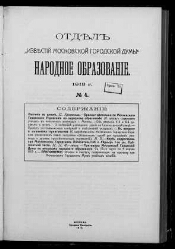Popular Education: Dep."News of the Moscow City Duma."- Moscow, 1916. -.I. Moscow City Council.1.News of the Moscow City Duma.2. People (collection).Electronic Source: PBPlace of Storage Original: RGPU them.A.I.Herzen1913. No. 4. - Mountains.Type., 1913. -53 s .. -Content: Plant at school / [cit.] P. Krotkova.Chronicle of the activities of the Moscow City Administration for Public Education.To the question of school construction: (about the construction of its own buildings for urban schools and other educational institutions) / VBTeenage club at the Moscow City Trustees on the poor 1st uch.Presnensk part / I.P.F-sk.The verdicts of the Moscow City Duma on the issues of public education: from March 19 to April 5, 1913, [and others].- Bibliogr.in a substrateNote.and in the text..1. People (collection).Electronic Source: PBPlace of Storage Original: RGPU them.A.I.Herzen