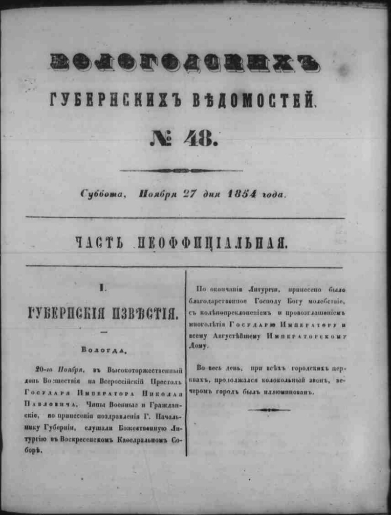 Vologda Provincial Gazette. - Vologda, 1838-1917 |