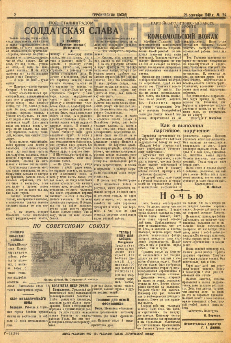 The heroic campaign: the Red Army newspaper of the N-th part