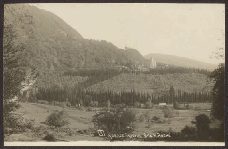 Caucasus. Abkhazia. The former. N. Afon [Izomaterial: electronic resource]: [postcard]. - Electronic data (2 files: 1.86 MB). - (St. Petersburg: Boris Yeltsin Presidential Library, 2012). - Access mode: the Internet portal of the Boris Yeltsin Presidential Library. The title from the screen. The image below is numbered "1". Electronic reproduction of postcard: Caucasus. Abkhazia. The former. N. Athos [Isoformal]. Odessa: Co-op photo, [1930s]. 1 postcard: photo printing. On the reverse side - stamps; the inscription in Ukrainian: "Poshtova kartika". Location: Tretyakov Gallery, St. Petersburg. Copying by users is not allowed