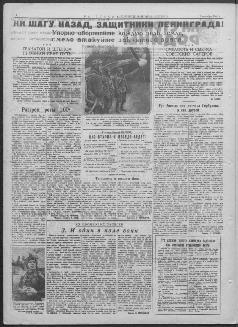 Guarding the Motherland: the newspaper of the Leningrad Military District. - 1918, May 1 -. - Leningrad, 1938-. - Title: 1918-1921 Red Army, Armed people, Fighting truth; 1921-1938 Red Star. Podzag: 1941 - the daily Red Army newspaper of the Leningrad Military District; 1945 - the daily Red Army newspaper of the Leningrad Front. Managing editor: 1945 - M. Gordon. Address: 1945 - Field mail 22245 A. The first issue of the newspaper "On Guard of the Motherland" was published May 1, 1918 under the name "Red Army". Later the newspaper came out under different names: "Armed People", "Fighting Truth", and from November 10, 1921 - "Red Star", as a printed organ of the Petrograd Military District. The title "Guardian of the Motherland" appears on February 4, 1938, when the newspaper becomes the organ of the Leningrad Military District. On April 7, 1940, the newspaper "On the Guard of the Motherland" was awarded the first of the district newspapers with a high award - the Order of the Red Banner. On her pages were printed satirical articles about soldiers' everyday life during the Soviet-Finnish war of 1939-1940, signed by the pseudonym Vasya Terkin - a character created by members of the editorial board of the newspaper consisting of A. Tvardovsky, N. Tikhonov, S. Vashentsev, V. Sayanov and others. Since the beginning of the Great Patriotic War, the district newspaper has become a front-line newspaper. Since November 2010 - the printed organ of the Western Military District, the newspaper "On Guard of the Motherland", is published as a regional tab to the central publication of the Ministry of Defense of the Russian Federation to the newspaper "Krasnaya Zvezda". Frequency of output 1 time per week, on Saturdays