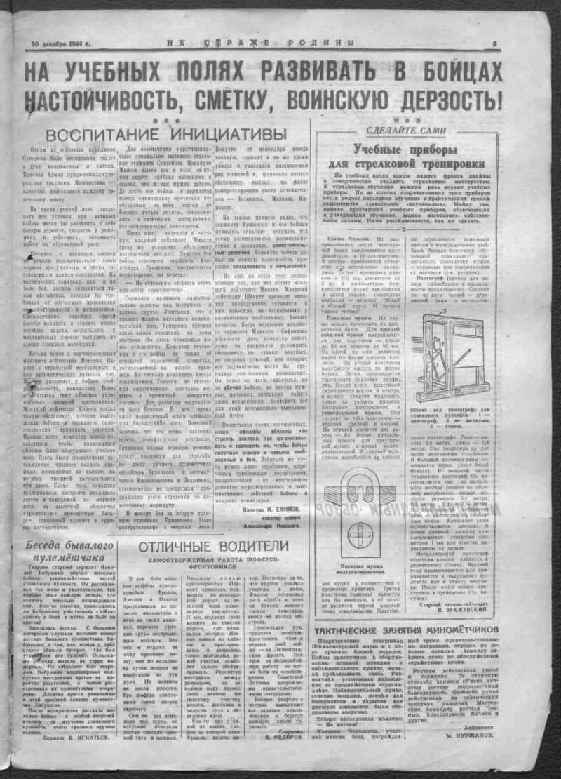 Guarding the Motherland: the newspaper of the Leningrad Military District. - 1918, May 1 -. - Leningrad, 1938-. - Title: 1918-1921 Red Army, Armed people, Fighting truth; 1921-1938 Red Star. Podzag: 1941 - the daily Red Army newspaper of the Leningrad Military District; 1945 - the daily Red Army newspaper of the Leningrad Front. Managing editor: 1945 - M. Gordon. Address: 1945 - Field mail 22245 A. The first issue of the newspaper "On Guard of the Motherland" was published May 1, 1918 under the name "Red Army". Later the newspaper came out under different names: "Armed People", "Fighting Truth", and from November 10, 1921 - "Red Star", as a printed organ of the Petrograd Military District. The title "Guardian of the Motherland" appears on February 4, 1938, when the newspaper becomes the organ of the Leningrad Military District. On April 7, 1940, the newspaper "On the Guard of the Motherland" was awarded the first of the district newspapers with a high award - the Order of the Red Banner. On her pages were printed satirical articles about soldiers' everyday life during the Soviet-Finnish war of 1939-1940, signed by the pseudonym Vasya Terkin - a character created by members of the editorial board of the newspaper consisting of A. Tvardovsky, N. Tikhonov, S. Vashentsev, V. Sayanov and others. Since the beginning of the Great Patriotic War, the district newspaper has become a front-line newspaper. Since November 2010 - the printed organ of the Western Military District, the newspaper "On Guard of the Motherland", is published as a regional tab to the central publication of the Ministry of Defense of the Russian Federation to the newspaper "Krasnaya Zvezda". Frequency of output 1 time per week, on Saturdays