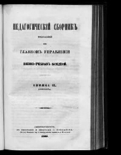 Педагогический сборник, издаваемый при Главном управлении военно-учебных заведений. - Санкт-Петербург, 1864-1918. - На кн. 608 за апрель-июнь 1918 г. изд. прекратилось. Выходит взамен "Журнала для чтения воспитанникам военно-учебных заведений". Издание содержит две части: официальную и неофициальную.