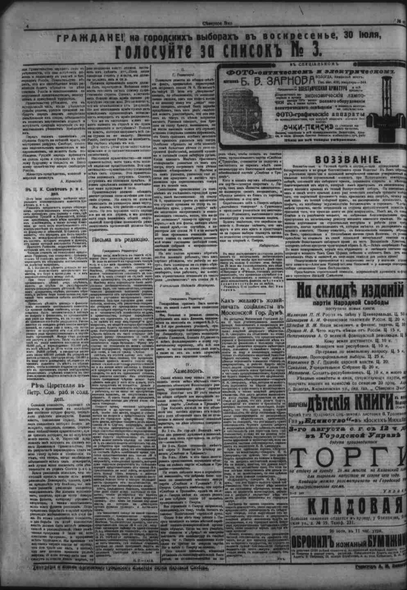 . - Vologda: Printing house and edition of the Vologda Provincial Party Committee of the People's Freedom Party, 1917, April 16 -