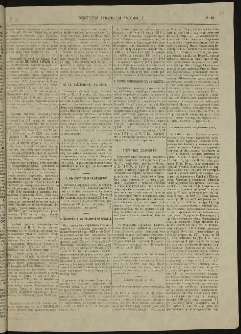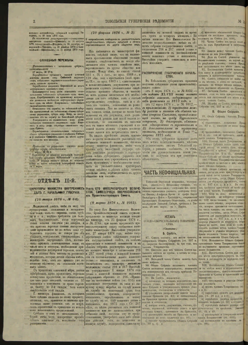 Tobolsk Province Gazette. - 1857, 27 Apr. - 1918, 3 April. - Tobolsk, 1857-1918. - Exit at 2 o'clock: Offic. and neophytes; from 1893 to 1897 both parts of the ed. Separately. Прил .: Yearbook of the Tobolsk provincial museum. Issue. 7-8. 1896-1897; Manuscripts of the library of the Tobolsk Province Museum in the 17th and first quarter of the 18th century. 1645-1676. (Issue 2). 1896; Department of Agriculture and Handicraft Industry. 1896-1906; The school department at the informal part of the Tobolsk Province Gazette. 1907-1917; Ad. to Dep. numbers. Decree: for the years 1858-1867, 1893.