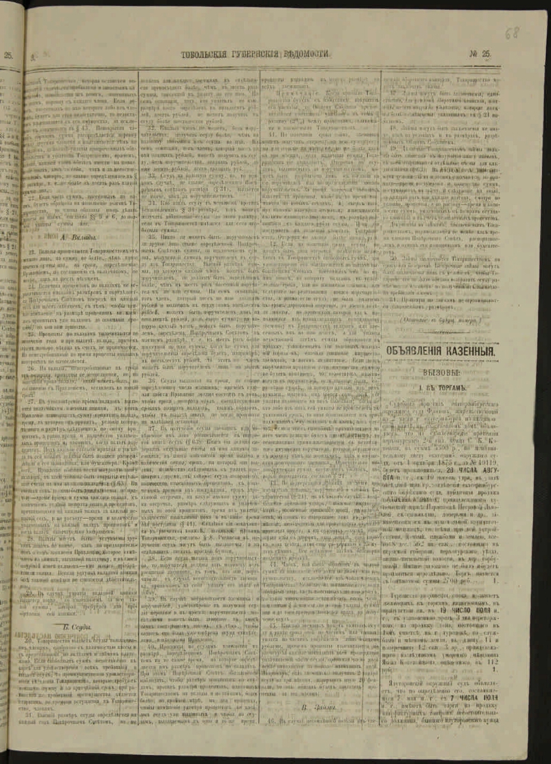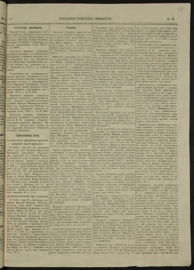 Tobolsk Province Gazette. - 1857, 27 Apr. - 1918, 3 April. - Tobolsk, 1857-1918. - Exit at 2 o'clock: Offic. and neophytes; from 1893 to 1897 both parts of the ed. Separately. Прил .: Yearbook of the Tobolsk provincial museum. Issue. 7-8. 1896-1897; Manuscripts of the library of the Tobolsk Province Museum in the 17th and first quarter of the 18th century. 1645-1676. (Issue 2). 1896; Department of Agriculture and Handicraft Industry. 1896-1906; The school department at the informal part of the Tobolsk Province Gazette. 1907-1917; Ad. to Dep. numbers. Decree: for the years 1858-1867, 1893.