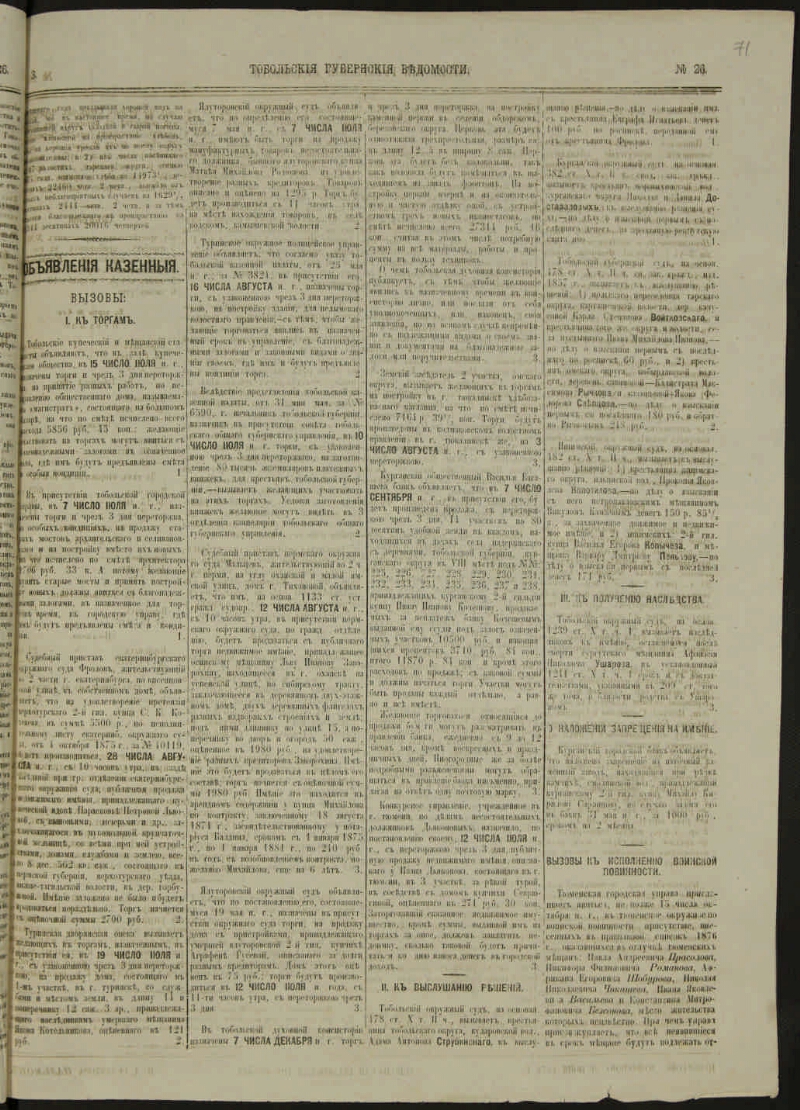Tobolsk Province Gazette. - 1857, 27 Apr. - 1918, 3 April. - Tobolsk, 1857-1918. - Exit at 2 o'clock: Offic. and neophytes; from 1893 to 1897 both parts of the ed. Separately. Прил .: Yearbook of the Tobolsk provincial museum. Issue. 7-8. 1896-1897; Manuscripts of the library of the Tobolsk Province Museum in the 17th and first quarter of the 18th century. 1645-1676. (Issue 2). 1896; Department of Agriculture and Handicraft Industry. 1896-1906; The school department at the informal part of the Tobolsk Province Gazette. 1907-1917; Ad. to Dep. numbers. Decree: for the years 1858-1867, 1893.