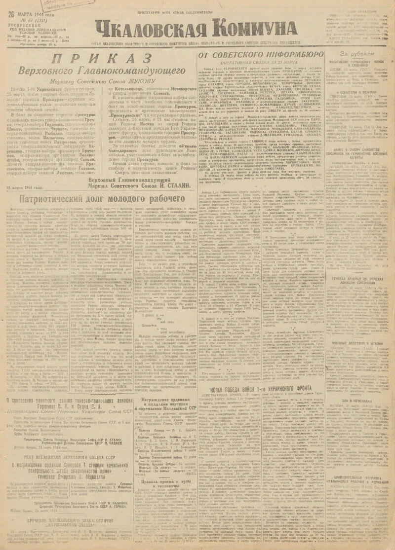 The Chkalov Commune: the organ of the Chkalovsky regional and city committees of the CPSU (B.), The regional and city Soviets of Working People's Deputies. - Chkalovsk, 1939-1958 |
