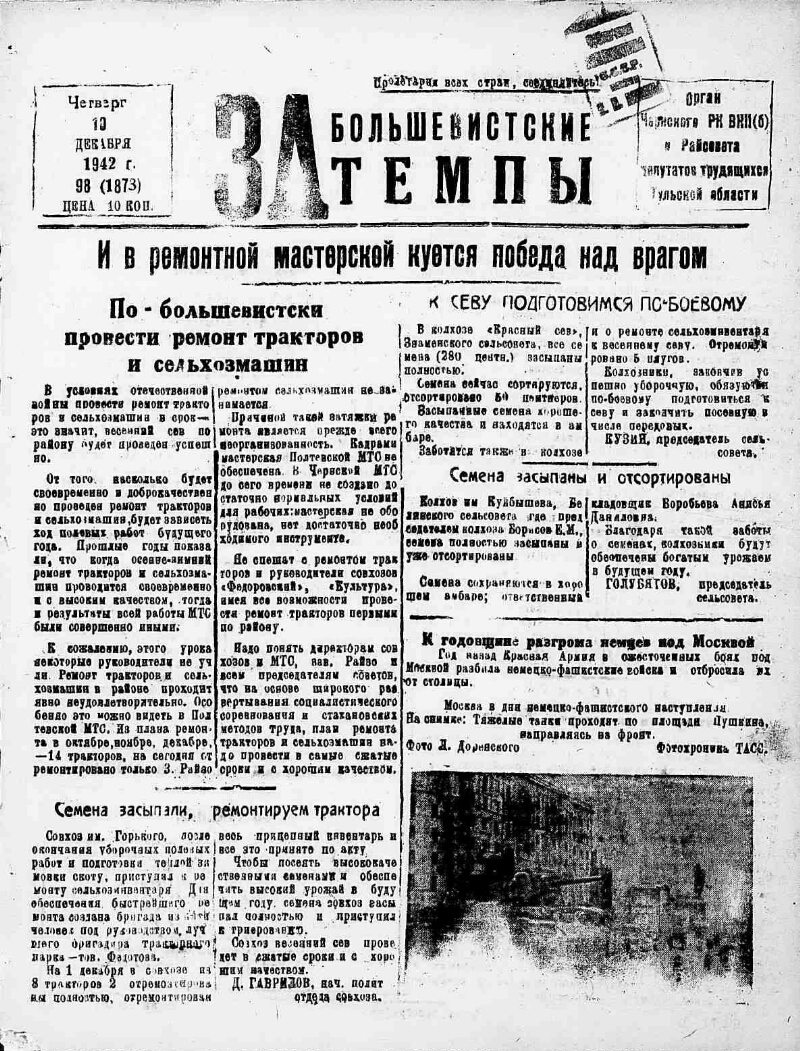 1. The Great Patriotic War - 1941 - 1945. 2. Periodic printing - Chern, city (Tula region). |