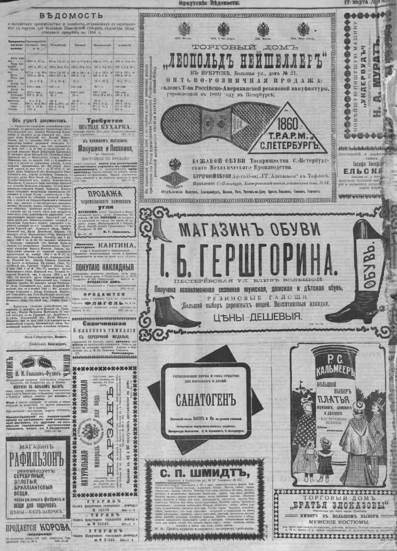 Description Irkutsk Province Gazette . - Irkutsk: Irkutsk provincial government, 1857- 1904, No. 3663 (March 3). - 4 s. . 1. History - Periodicals - Russia. 2. Irkutsk Province. BBC 63.3 (28-8Irk) 531n51 Source of electronic copy: Irkutsk OGUNB Location on the original: Иркутская ОГУНБ Publisher Иркутское губернское правление Catalogue object История Collections Domestic periodicals in the Presidential Library’s collections → Newspapers → I → Irkutskie Gubernskie Vedomosti (Irkutsk Provincial News). Irkutsk → 1904