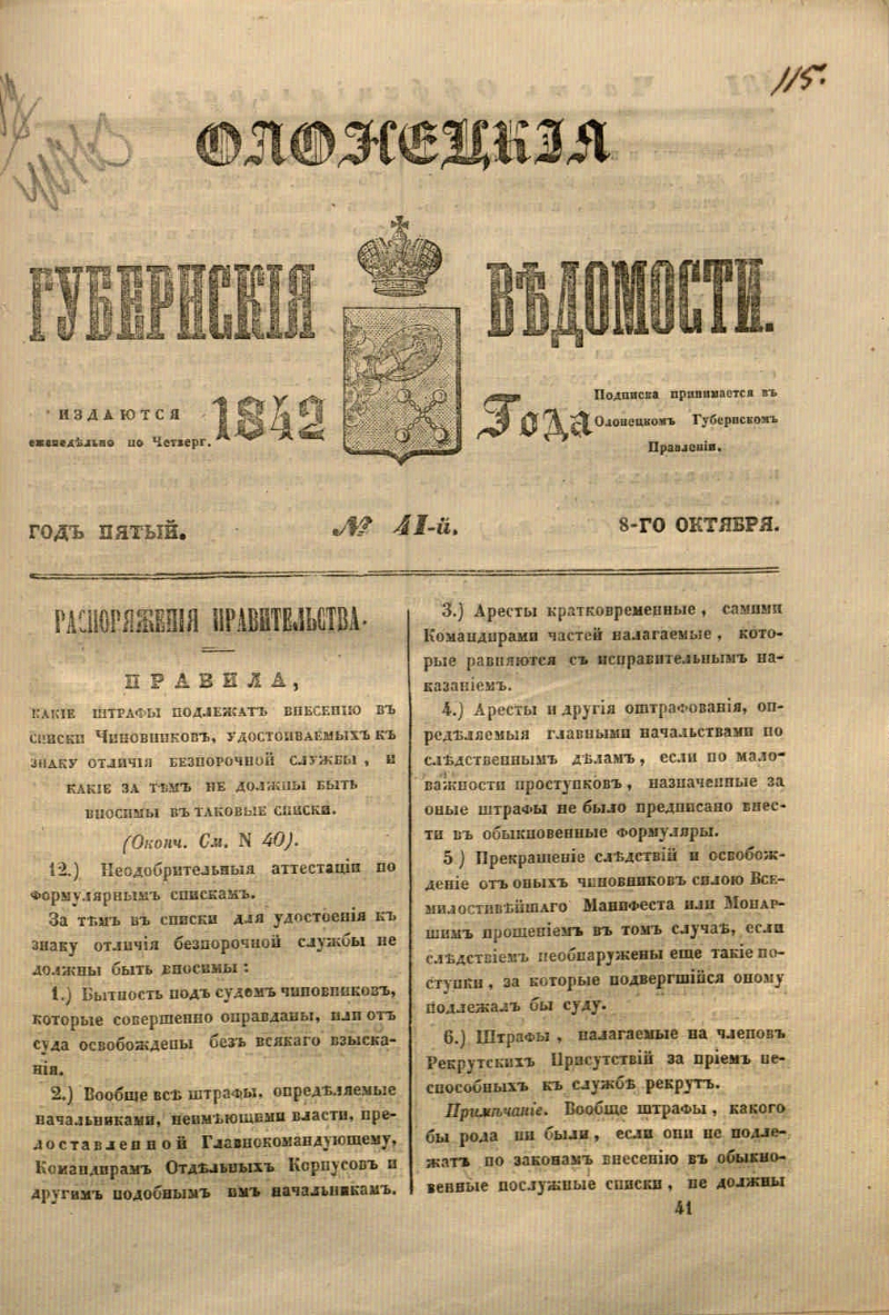 1. Territory of Russia (collection). 2. Power (collection). 3. Russia - History - 18 - beginning. 20 centuries. -- Periodicals. 4. Olonets province - History - Periodicals. 5. Provincial Gazette. |