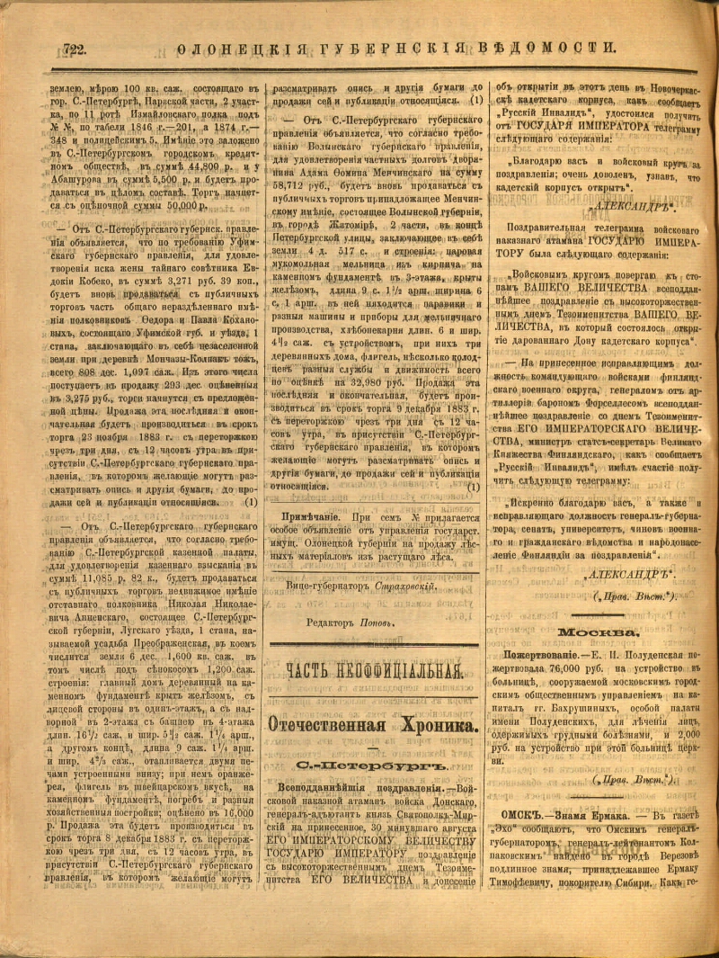 1. Territory of Russia (collection). 2. Power (collection). 3. Russia - History - 18 - beginning. 20 centuries. -- Periodicals. 4. Olonets province - History - Periodicals. 5. Provincial Gazette. |