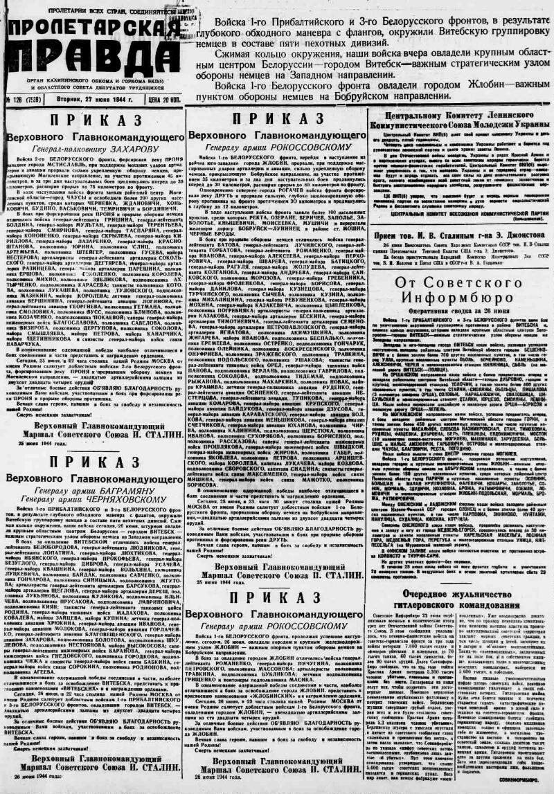 Proletarian Truth: the organ of the Kalinin Oblast Committee and City Committee of the CPSU (b) and the Regional Council of Working People's Deputies
