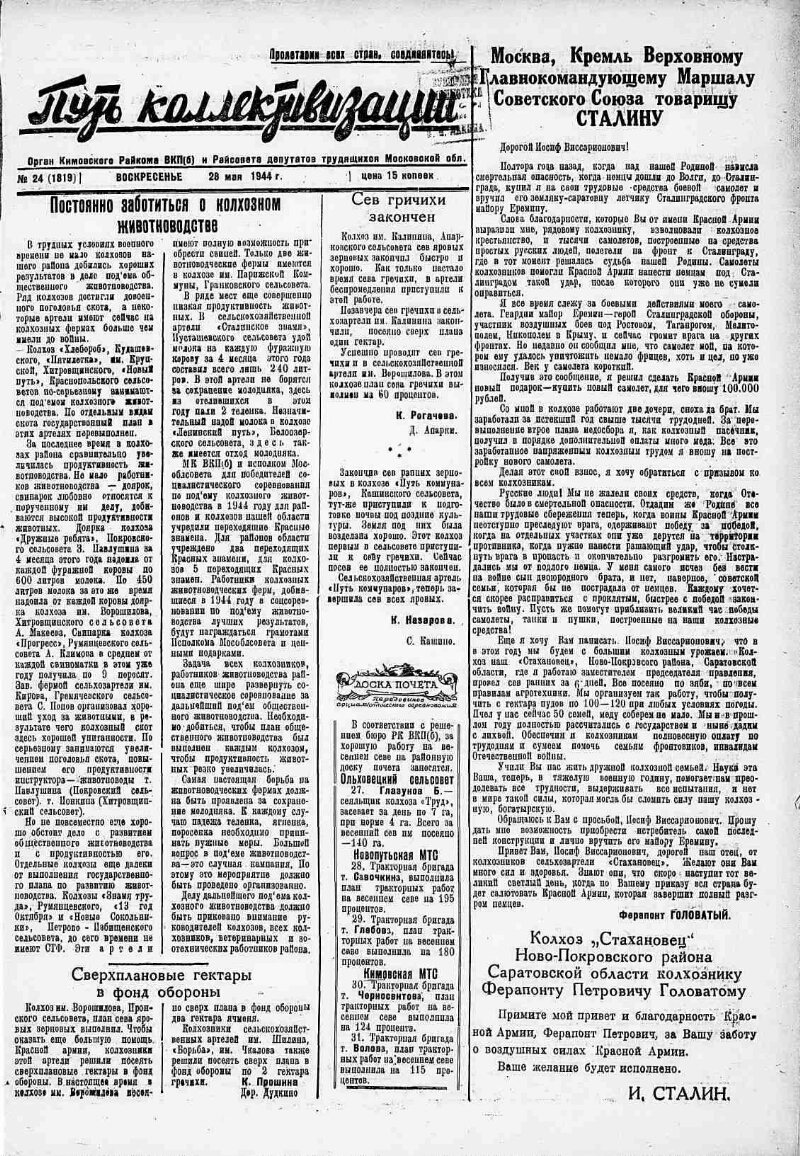 The path of collectivization: the organ of the Kimovsky District Committee of the CPSU (b) and the District Council of Working People's Deputies of the Tula Region.