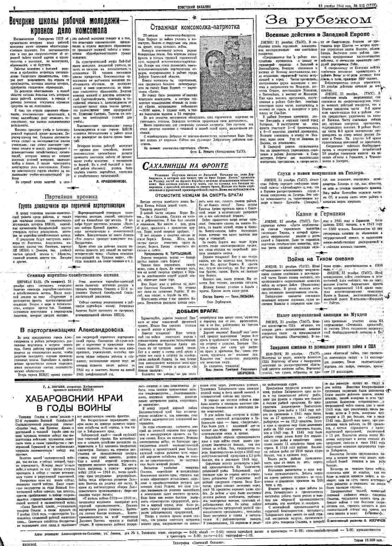Soviet Sakhalin: the organ of the Sakhalin Regional Committee of the CPSU (b) and the Regional Council of Working People's Deputies