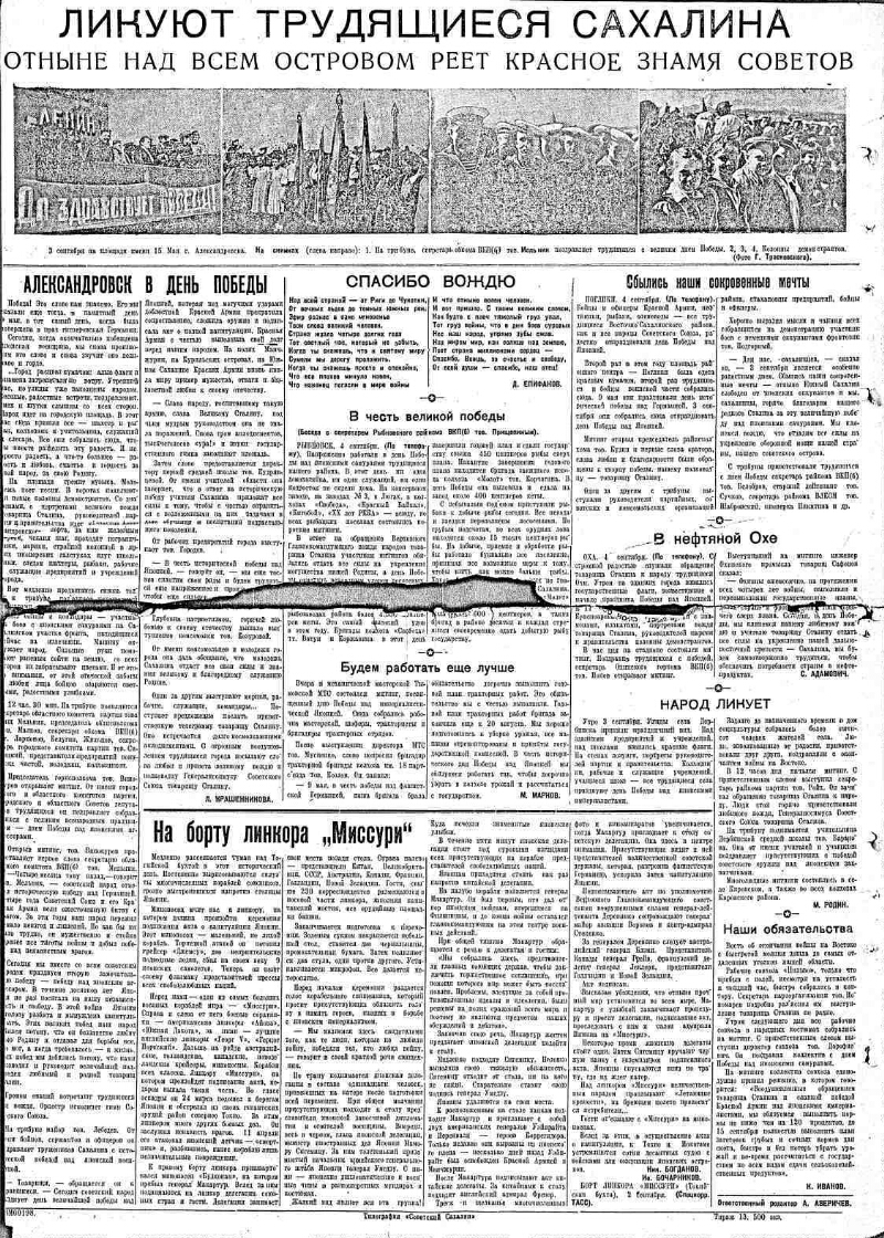 Soviet Sakhalin: the organ of the Sakhalin Regional Committee of the CPSU (b) and the Regional Council of Working People's Deputies
