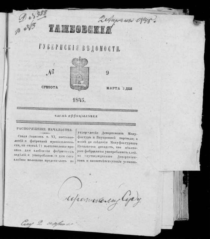 Tambov provincial statements.Tambov, 1838-1917.1845, No. 10 (March 10).1845.