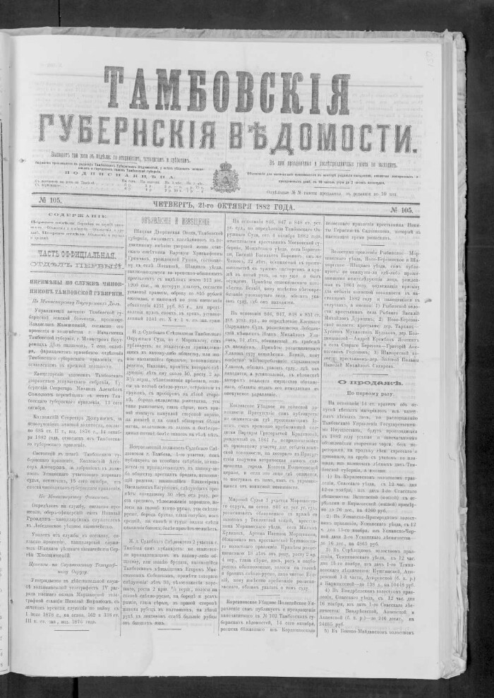 Tambov Province Gazette. 1882, No. 105 (October 21)