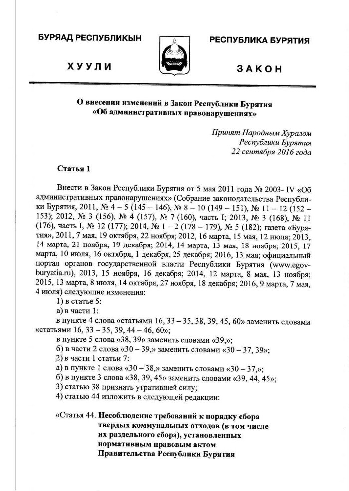 On Amendments to the Law of the Republic of Buryatia "On Administrative Offenses"