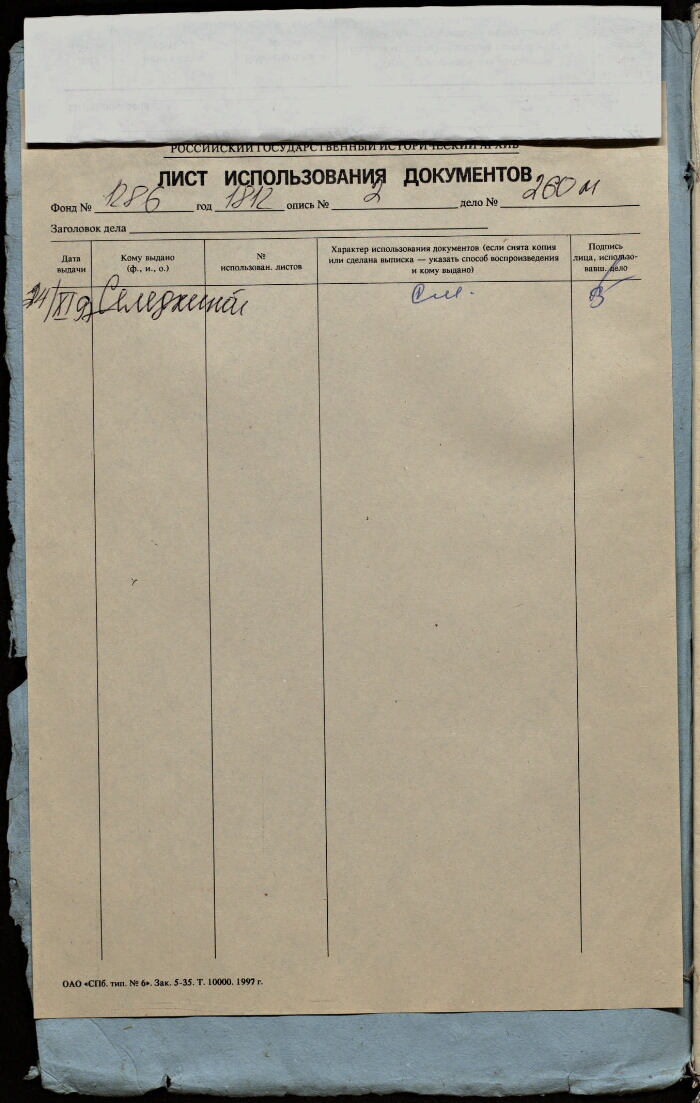 | Шифр хранения | РГИА. 1286 / 2 / 260 о) |