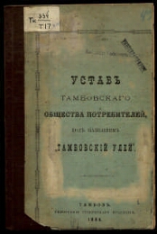 Устав Тамбовского общества потребителей, под названием "Тамбовский улей" : [Утв. 16 декабря 1885 г.]. - Тамбов : Тип. Губ. правления, 1886. -18 с. ; 17 см. -