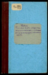 Устав Тамбовского общества взаимопомощи служащих по сельскохозяйственной части : [Утв. Министром земледелия и гос. имуществ 20 марта 1899 г.]. - Тамбов : Типо-лит. Н. Бердоносова и Ф. Пригорина, 1903. -[23] с.. - Экз.: без обл.