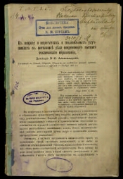 К вопросу о недостатках и желательных улучшениях в постановке дела современного высшего технического образования : Докл. В.Я. Александрова, (чит. в общем собр. О-ва для содействия рус. пром-сти и торговле 19 нояб. 1903 г.). - Санкт-Петербург : тип. инж. Г.А. Бернштейна, [1904]. -63 с., 2 л. табл. ; 23 см. - Библиогр. в подстроч. примеч.. - Экз.: без обл. и тит. л., с дарств. надписью Глубокоуважаемому Николаю Константиновичу Михайловскому от автора.