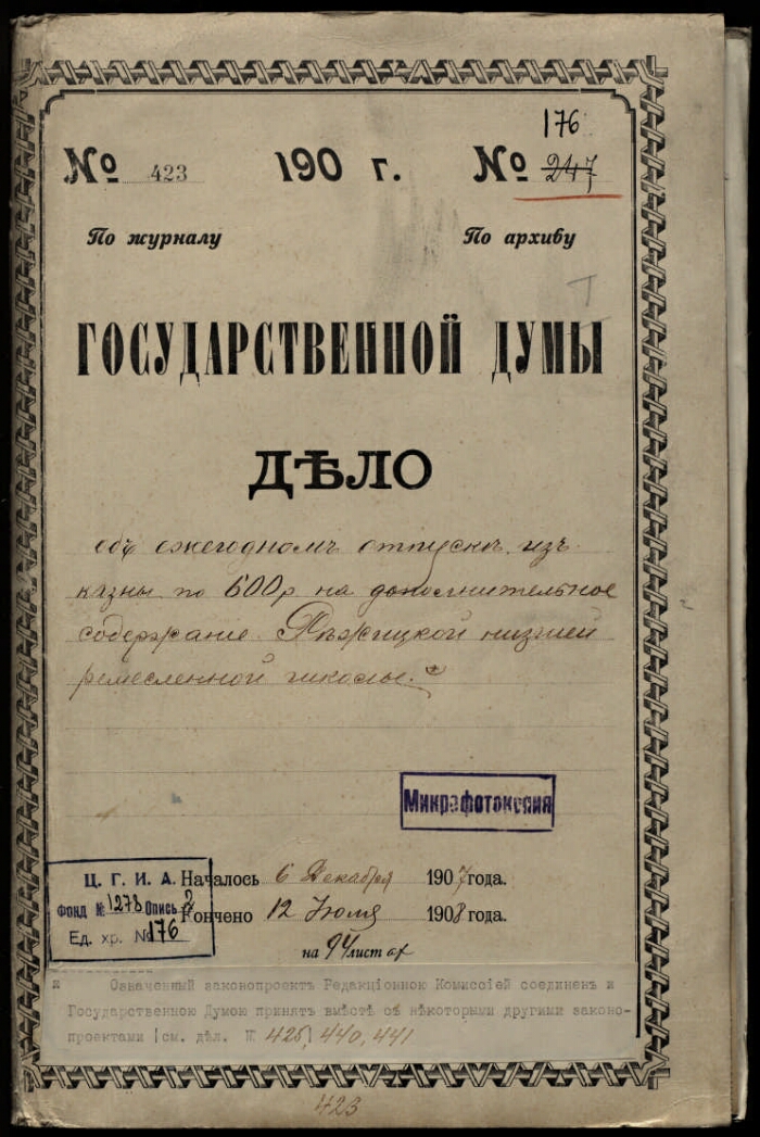 | | $a | Государственная Дума III Созыв. Дела по законопроектам ведомств, законодательным предложениям и запросам членов Государственной Думы, дела комиссий, прошения и жалобы крестьянских обществ и частных лиц |