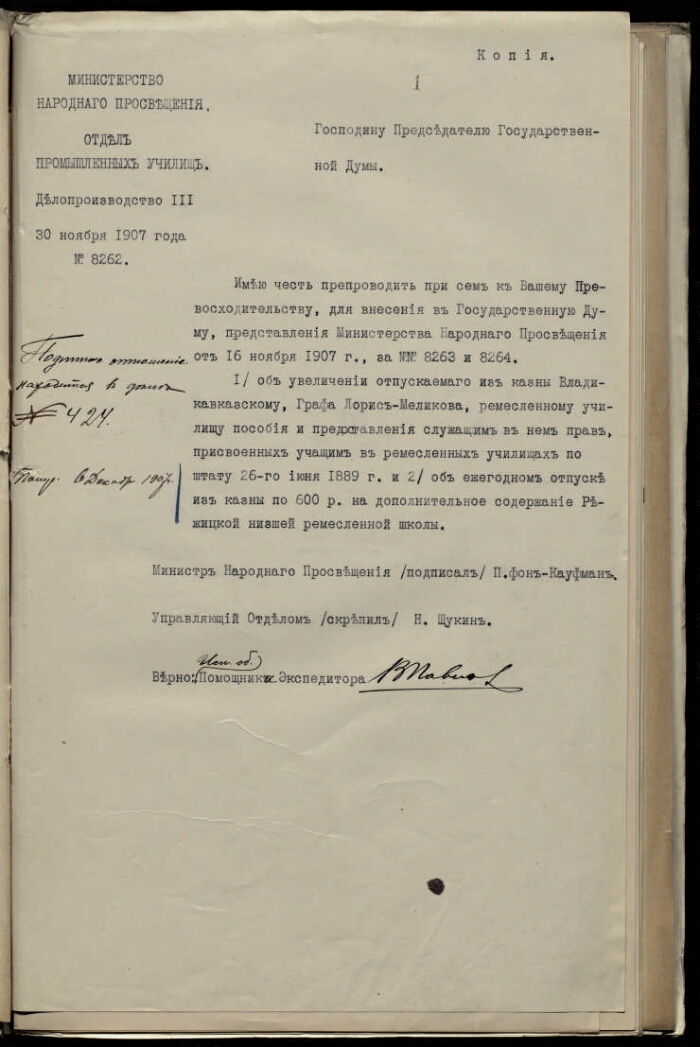 300 | ## | $a | Оригинальный заголовок дела: Дело об отпуске из казны по 600 рублей на дополнительное содержание Режицкой низшей ремесленной школы. 6 декабря 1907 г. - 12 июля 1908 г. |