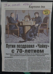 Путин поздравил "Чайку" с 70-летием : Президент пригласил к себе в гости первую женщину-космонавта планеты Валентину Терешкову / фото Анатолия Жданова . - (Картина дня) // Комсомольская правда. - №...(3 марта) / Милкус, А. Б. - 2007. - 605 : Открытый космос.