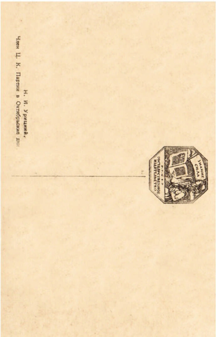 М. С. Урицкий [Изоматериал : электронный ресурс] : [открытка] / [фото М. Наппельбаума]. - Электронные данные (2 файла : 1,9 МБ). -(Санкт-Петербург: Президентская библиотека имени , 2017). - Режим доступа: интернет-портал Президентской библиотеки. Заглавие с экрана. Заглавие на лицевой стороне под изображением: М. С. Урицкий. На оборотной стороне заглавие: Н.[!] И.[!] Урицкий. Член ЦК партии в Октябрьские дни. Фотограф установлен по изданию: Петербург - Петроград - Ленинград : альбом-каталог фотооткрыток 1895-1945 годы. Т. 5: Петроград 1917-1924. Санкт-Петербург, 2016. С. 251. Электронная репродукция открытки: М. С. Урицкий [Изоматериал] / [фото М. Наппельбаума]. Государственное издательство "Знание-сила", [1918]. 1 открытка : фотопечать. Местонахождение: ГМЗ "Петергоф". Копирование пользователями не разрешается. Российский революционный и политический деятель, известный прежде всего своей деятельностью на должности председателя Петроградской ЧК. 30 августа 1918 года убит Леонидом Каннегисером